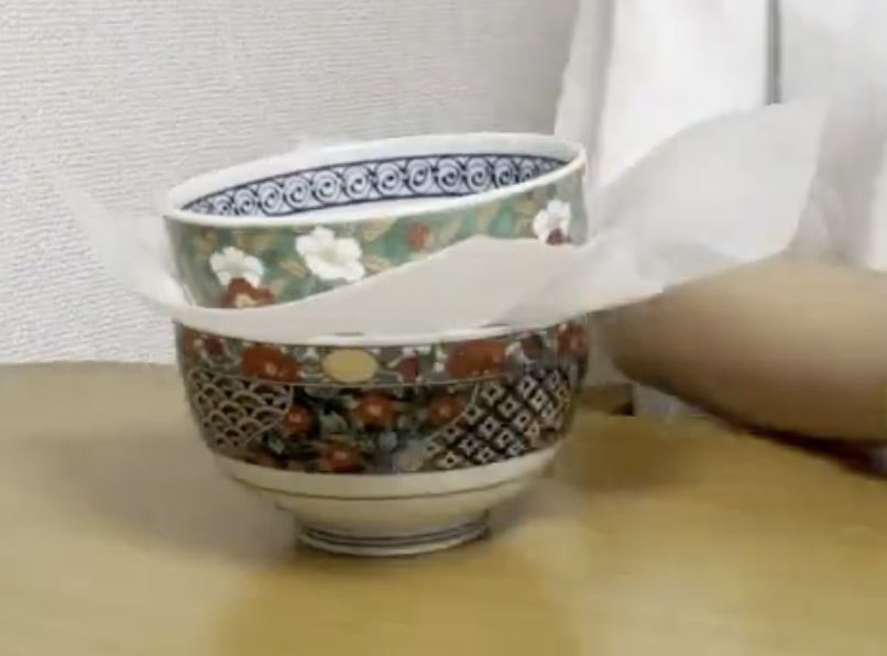 ✔ 食器同士が当たって割れないように、緩衝材を使って 食器が触れないようにする